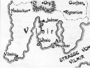 Sandsteinen mit standardisierten Abmessungen gebaut. Der Herzog Avan Astran von Alt-Hrolmar ist einer der wenigen Vilmierer, die das Wirken der Kirche der Ordnung ablehnen. Unter seiner Herrschaft entwickelt sich Alt-Hrolmar zu einer barocken Metropole, die gerne von Freidenkern, Künstlern, Abenteurern und Philosophen besucht wird. Leider erleidet Herzog Avan den Tod durch die Hand von Elric, weshalb das Aufblühen der Stadt nur kurze Zeit währt. Nach dem Tod von König Naclon bei der Belagerung von Imrryr stürzt sich Vilmir in einen Kampf um die Thronfolge. Naclons Nachfolger wird beschuldigt, ein Schwindler zu sein und der von Kardinal Garrick gewählte Vertreter übernimmt den Thron. Nach einigen Jahren wird Thronfolge durch die Krönung eines neugeborenen Kindes gefestigt. Weniger als zwölf Monate danach sollte auch Vilmir dem Untergang der Welt folgen. Die Stadt Nadsokor liegt zwar innerhalb der Staatsgrenzen Vilmirs, unterliegt aber nicht der Befehlsgewalt des Vilmirer Staates. |