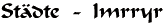 Imrryr ist die Haupstadt von Melniboné. Sie ist als die "Träumende Stadt" bekannt, wohl aufgrund der Schleier der Drogen, die den Tagesablauf der Einwohner bestimmen. Imrryr ist voller Türme, Kuppeln und Paläste; die Architektur ist teilweise recht bizarr, aber beeindruckend schön. Die Türme und Paläste schillern in verschiedenen Pastellfarben und aufgetragenen Goldschichten. Bemerkenswert ist der sogenannte Monshanjik-Turm, benannt nach dem großen Zauberer und Architekt, der als Kerker dient. Der Name dieses Mannes ist den Melnibonéern noch heute ein Begriff. Von der Ausdehnung her könnte die Stadt leicht 275.000 Menschen Raum bieten. Zum aktuellen Zeitpunkt wohnen dort aber nur noch etwa 5.000 Melnibonéische Adlige sowie 50.000 Sklaven. Die Adligen können aufgrund ihrer geringen Zahl die Befestigungsanlangen nicht mehr ausreichend besetzen. |